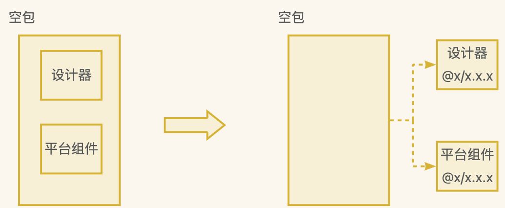 这里首先做的就是将原有的对外暴露的空包代码进行收敛,将设计器资源、组件核心包资源收敛到平台,通过报版本的概念的统一管理,并以设计器版本作为统一口径。
